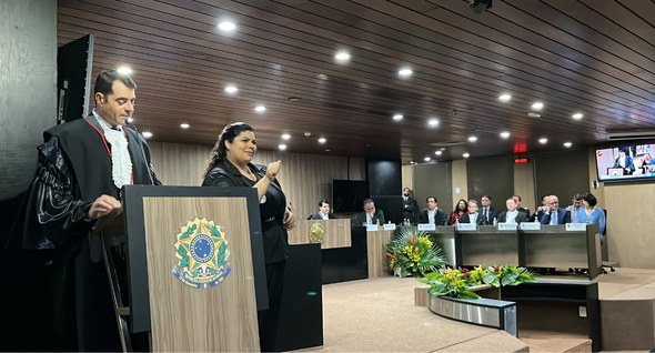 Atendendo às recomendações de objetividade do Conselho Nacional de Justiça (CNJ), o assessor e mestre de cerimônias, Lucas Pereira, registrou a saudação respeitosa a todas as autoridades presentes, representando os Três Poderes, forças de segurança, imprensa e a sociedade civil.